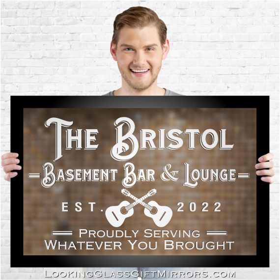 - 20"x14" framed size - Black wooden frame - The design will be sand-etched into the front of the mirror to create a crisp, silver-colored finishSelect options -