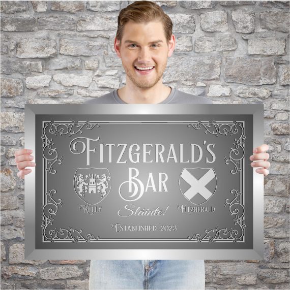 Custom: P Mc re. Paddy 33″ x 23″ Framed Etched Mirror